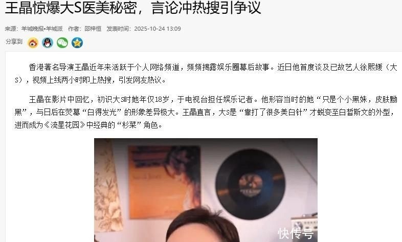 王晶惊爆大S医美秘密,言论冲热搜引争议.羊城晚报.2025-10-24